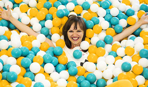 Muni d’accessoires, plongez dans une grande piscine remplie de balles !
